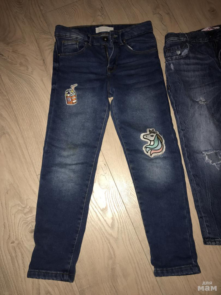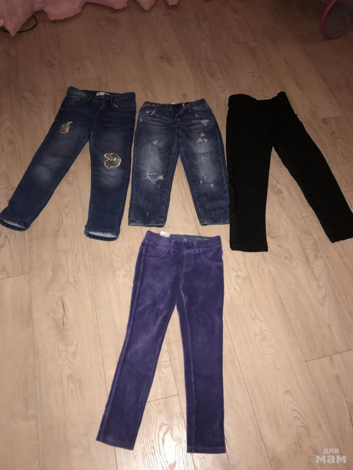Размер 6.,-7,но лучше с 5-6 пакетом.Zara джинсы утеплённые,акула чёрные тёплые,Беннетон вельветовые ,глория джинс с дырками родными