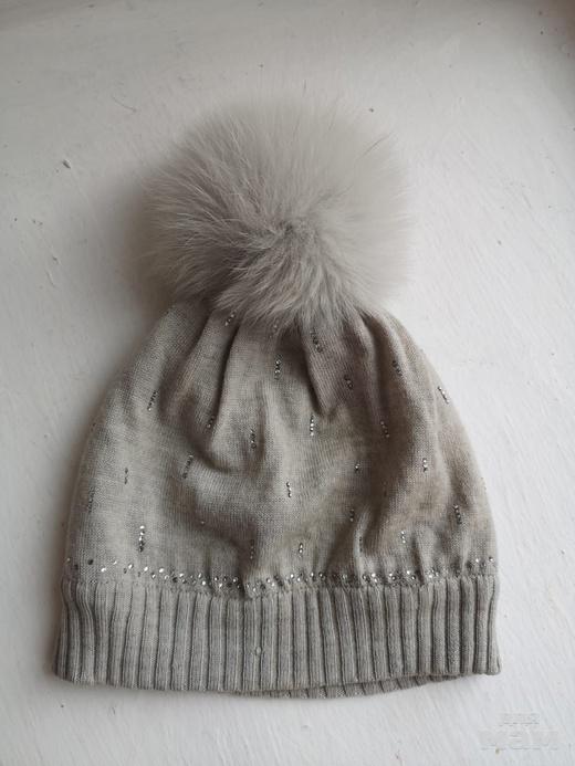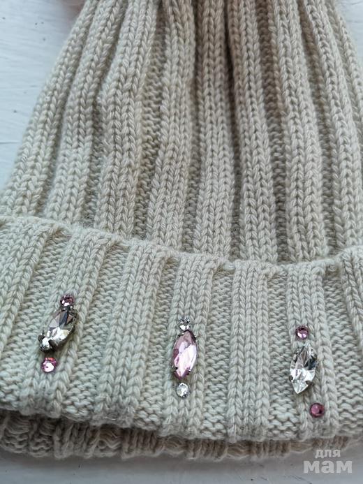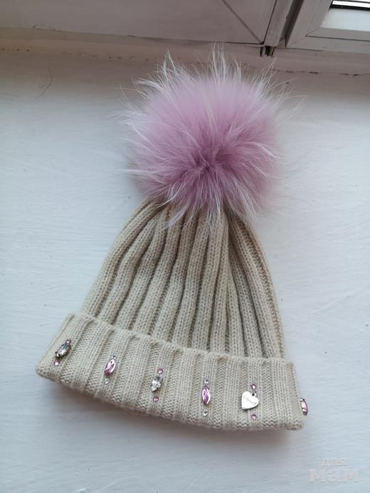 Все камешки на месте, как и лого бренда на сердечке, вязка одинарная, плотная, мягкая. На месте ушек загиб. Помпон натуральный (не знаю, кто). 70% шерсть, 30% кашемир.