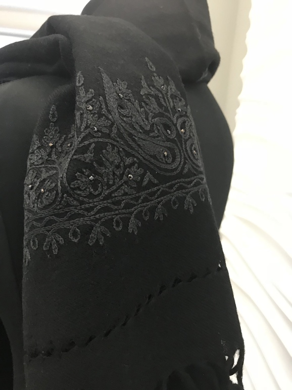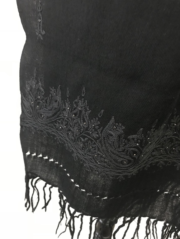 Новый черный палантин.100 % кашемир. Вышивка ручной работы. Цена 7000 руб