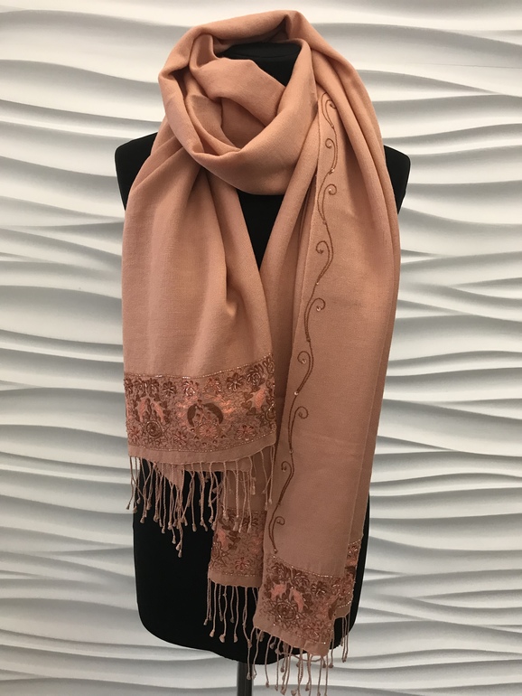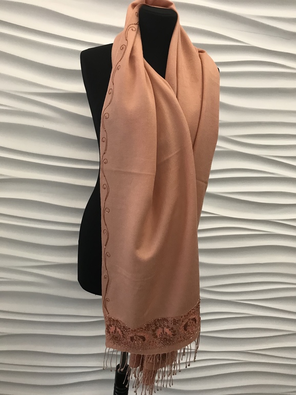 Новый Персиковый палантин с вышивкой ручной работы .100% кашемир 7000 руб