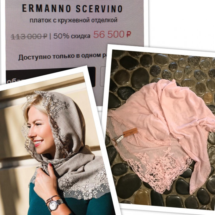 Новый платок с кружевом ERMANNO SCERVINO .Цена 25 тыс