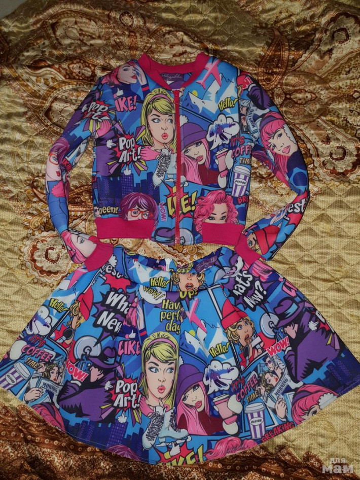 1. Стильный бомбер с юбкой "Стильняшка". Размер 116, но мы носили примерно до 120 см. Есть пара зацепок, но их совсем не видно. В остальном отличное состояние. Цена 900 руб. Продан