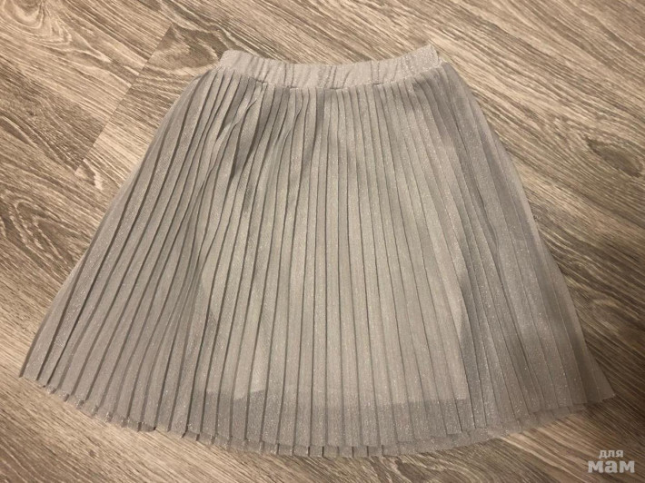 Юбочка нарядная, в складку. Новая!Серебряная блестящая. Очень нежная. Размер: 140, на 9-10 лет. С подкладкой.