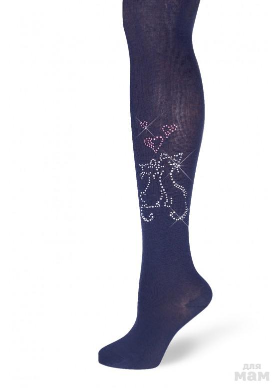 Колготки для девочки, сзади украшены рисунком из страз и бантиками.