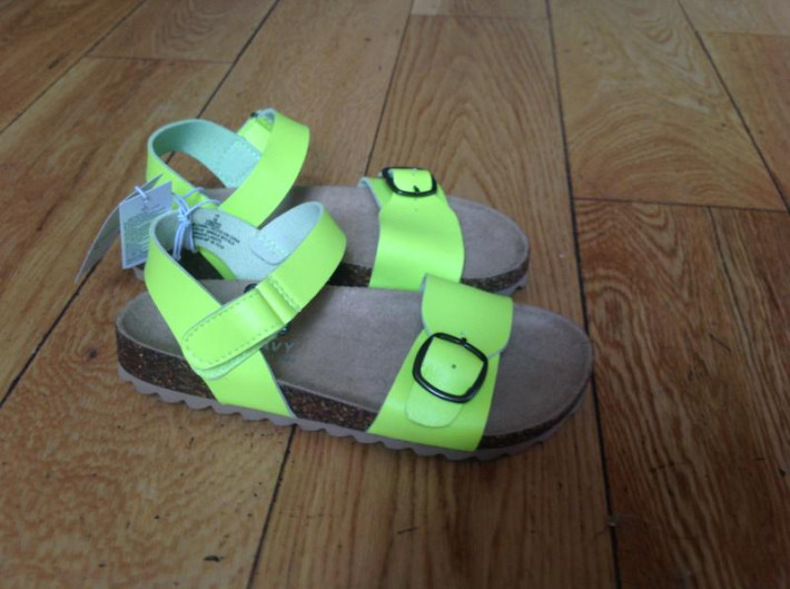 Сандали на пробке верх искуственный материал цвет неон салатовый маломерят(( цена 1300р