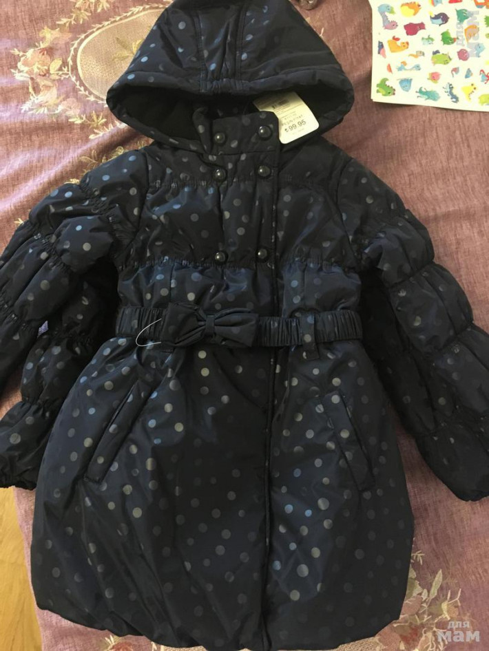 Продам новое пальто, внутри синтепон и утепление флисом. Цвет темно-синий в горошек. Непромокаемые.