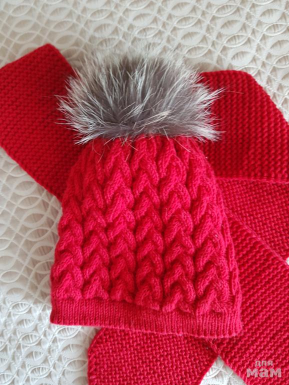 Комплект ручной вязки, кашемир. Шапочка двойная. На мороз. Новый. Помпон натуральный. 2-3 года примерно. . Цвет бордовый, чуть спокойнее чем на фото. Продаю по цене материала