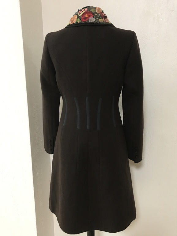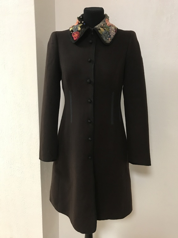 Пальто EMANUEL UNGARO, размер 42 Итальянский. Отдавала в отелье поменять подклад(родной испортили в химчистке),подклад новый,но девочки перестарались),поставили подклад Rocco Barocco. Красивый шоколадный цвет,воротник-бархат и на нем очень красивый декор.(в этом сезоне пальто D@G в таком стиле) 15 тыс