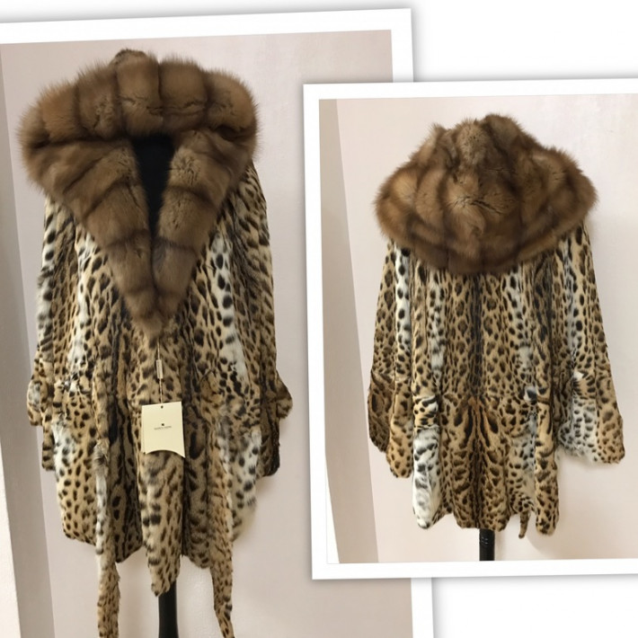 НОВАЯ шуба MARCO VARNI . Огромный капюшон из соболя. Звериный окрас не пугает настоящих модниц. Леопардовый принт-самый модный в осенне-зимнем сезоне 2018-2019 г. Цена 250 тыс.ПРОДАНО!