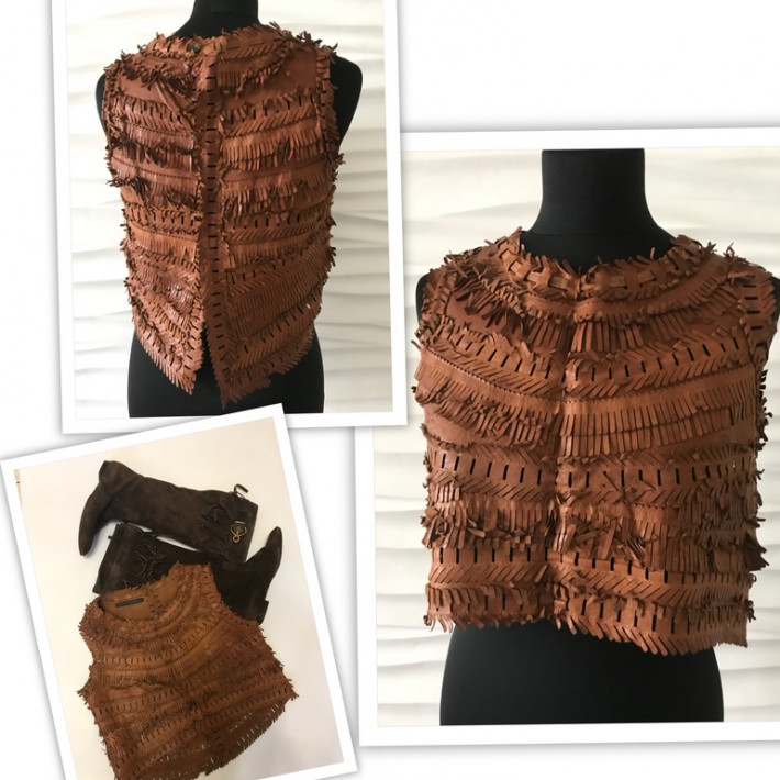 Кожаный жилет в стиле бохо ERMANNO SCERVINO. Размер 40 Ит. Цена 20 тыс