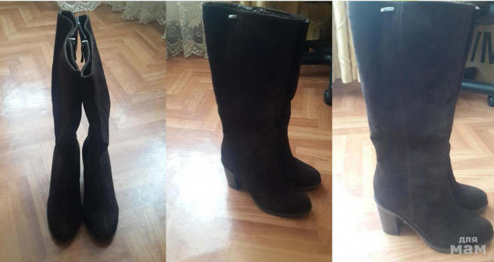 Высота каблука 9см, платформа 1см, высота голенища от пятки 34см, ПО голенища вверху 19см.+ резиночки есть.