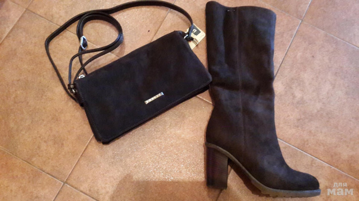 К сапожкам есть замшевый клатч в комб. с иск. кожей, шоколадного цвета -900р.
