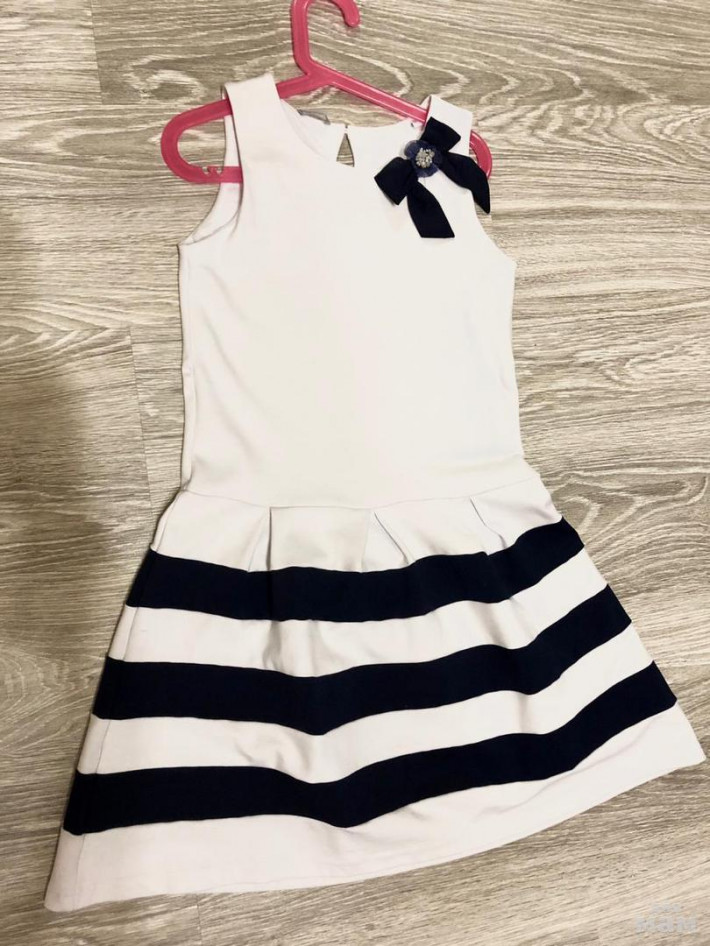 Белое, с синими вставками. Сбоку синиц бант. бу 1 раз