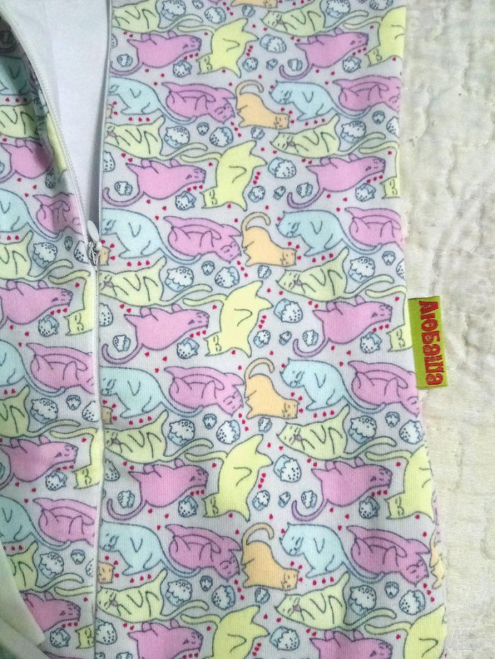 1. Пеленка-кокон (100% хлопок) двухслойный трикотаж на молнии 0-6 мес. сост отл. + три чепчика