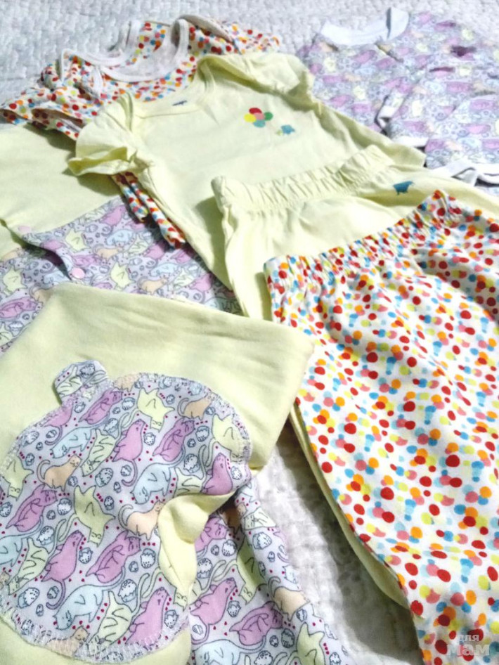 3. Трикотажные футболки (3 штуки) и ползунки (2 штуки) modis (100% хлопок) р. 62, сост. отл.