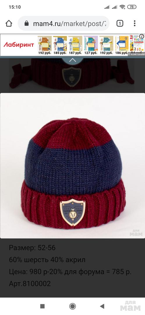 Модель плотной вязки, внутри флисовая подкладка. Сзади - защип, за счет которого шапка лучше садится.