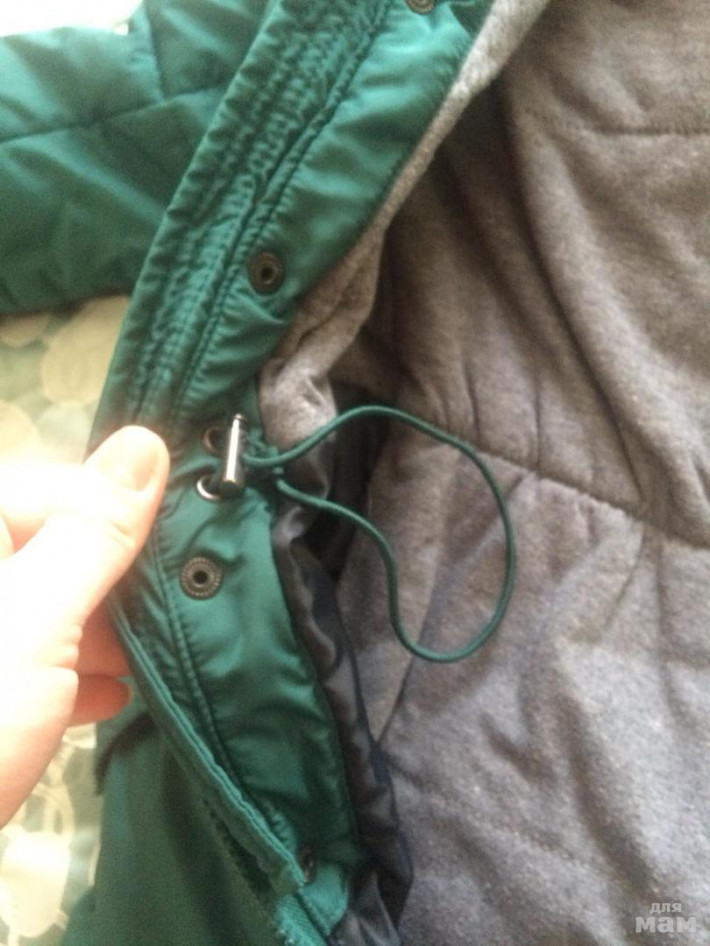 Есть дефект на коленках, при носке не видно. Очень тёплый. После химчистки.