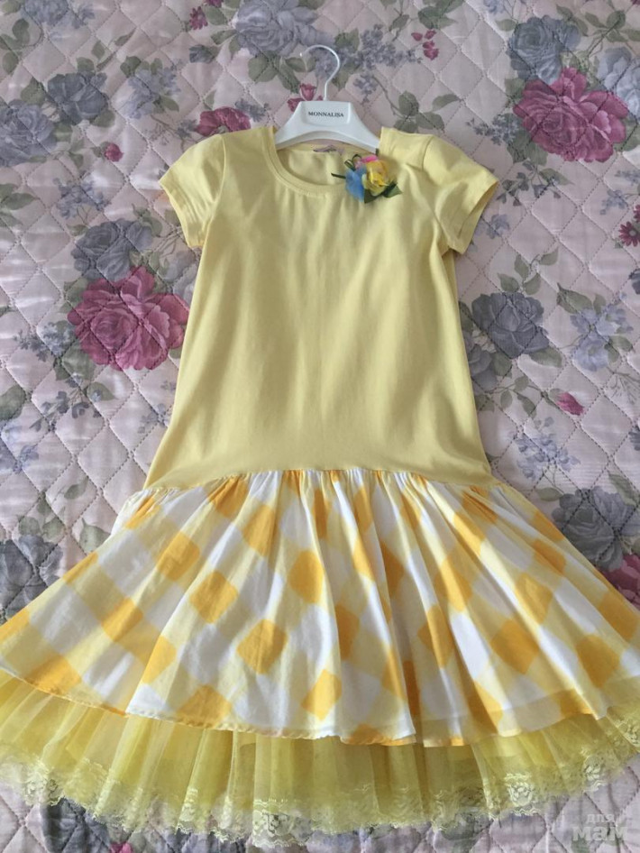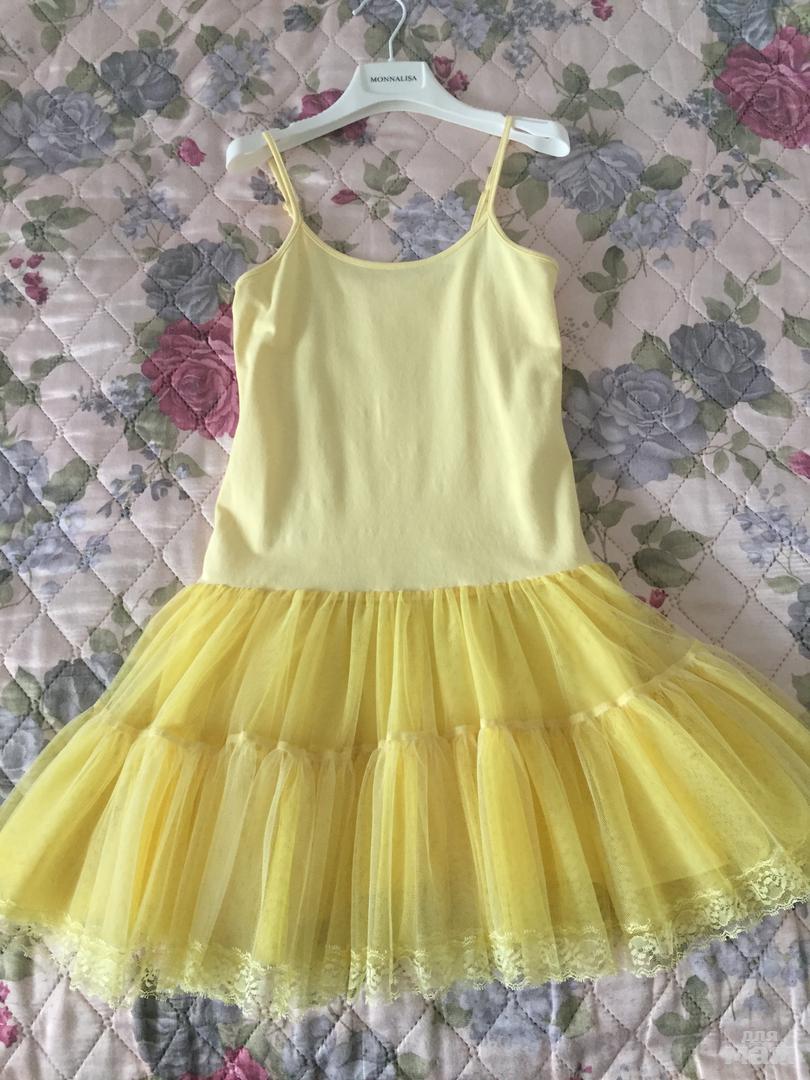 Платье Monnalisa, размер, 10 лет, немного большемерит, состоит из двух платьев : верхнего и нижнего топа с подьюбником. Очень нарядно и ярко смотрится на ребенке.