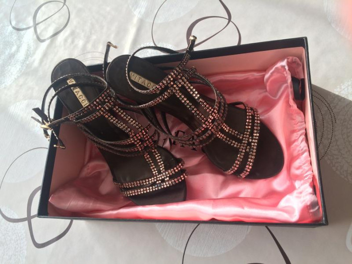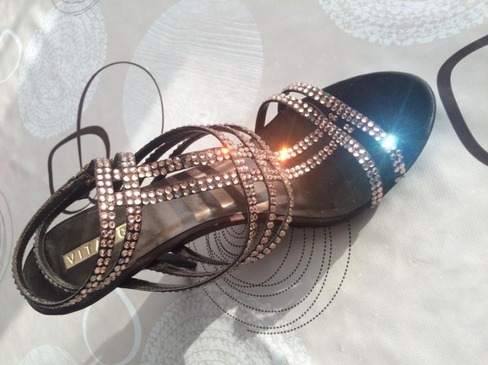 Продаю туфельки на каблучке, фирма Vitacci. Сделают любую девушку принцессой, идеально для свидания, вечернего выхода, выпускного бала. На удобном каблучке, с тонкими ремешками, отделанными стразами, по две боковые золотые застежки. Размер 38 (немного маломерят, скорее на 37-37,5)