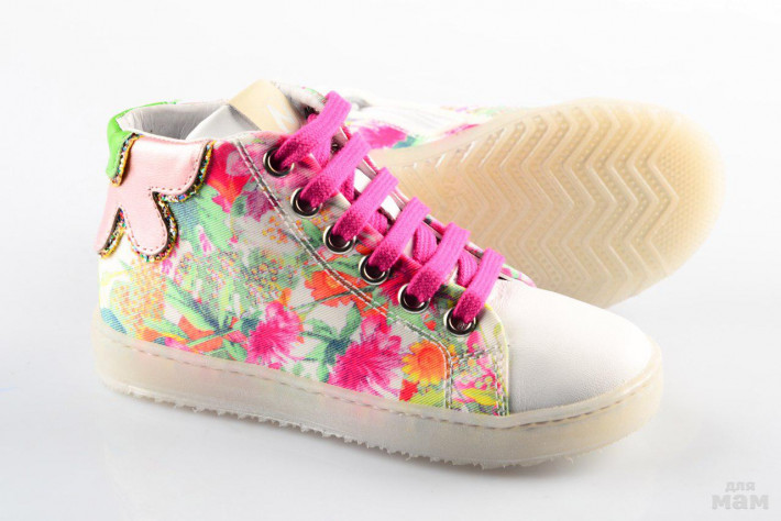 Кеды NATURINO , сделаны из ткани в цветочек+заммша цвета фуксия+желтая кожа, внутри -сеточка, стелька -кожа