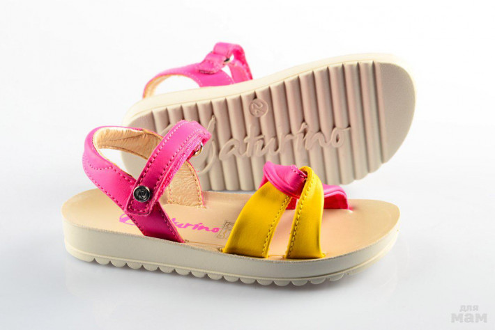 Босоножки NATURINO, сделаны из кожи цвета фуксии и желтой кожи, внутри -кожа