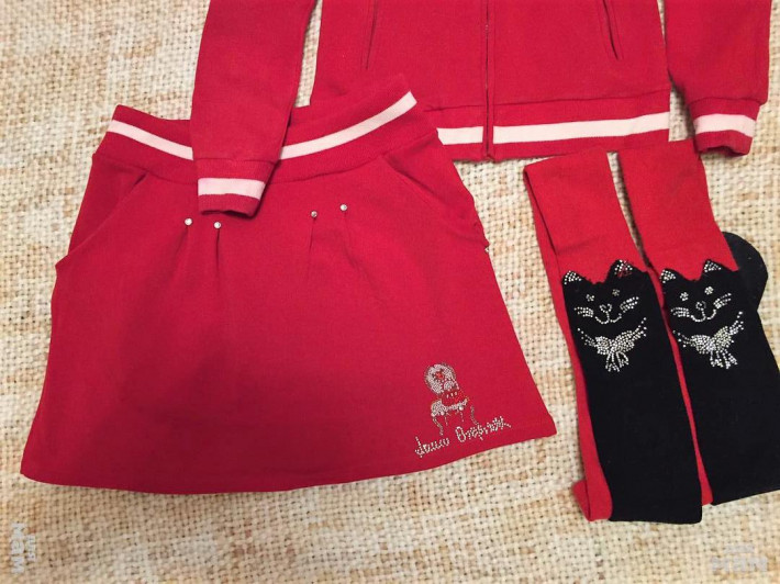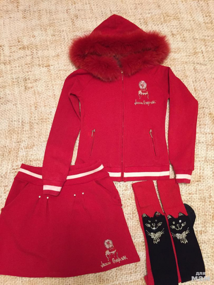Очень красивый костюм Лаура Биаджотти! Больше таких нет(( Хлопок с начесиком,на весну,осень+10. Мех на капюшоне натуральный,отстегивается.Есть небольшие нюансы: на юбке утеряно несколько стаз.На кофте есть маленькие темные пятнышки,не отстирались. На белых полосках небольшие розовые разводы.Все это не заметно при носке! только при ближайшем рассмотрении. При желании можно доклеить стразы и перестирать костюм)) Колготы в подарок.