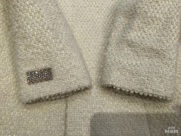 На рукаве - лэйбл из страз. Рукава у пальто в идеале!