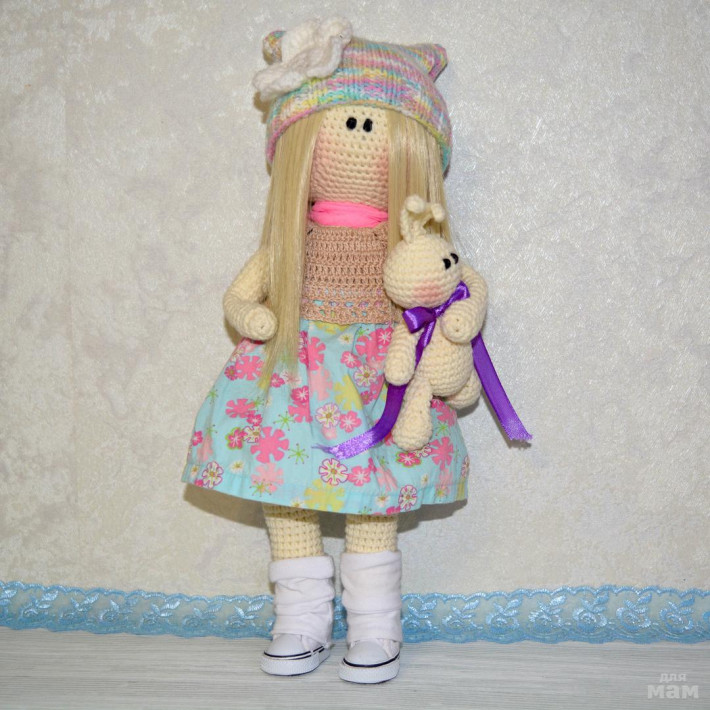Шапочку при желании можно снять и поменять на другую, но волосы оформлены под шапочку.