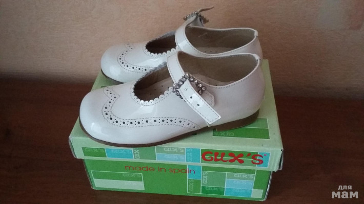 Испанские туфельки Gux's в состоянии новых. Натуральная кожа, лак, цвет ближе к молочному, длине по стельке 15,5-16 см. Идеальный вариант на праздники. Обували 2 раза в помещении.
