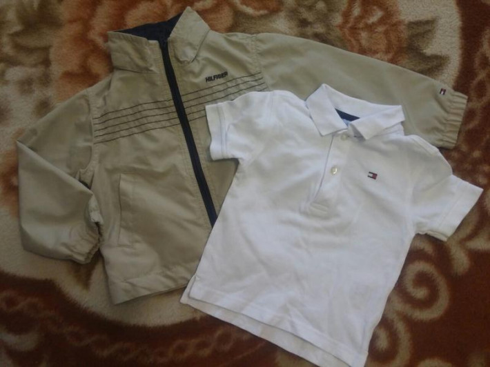 Поло фактурное белое классика, состояние идеальное. Не помню одевали или нет . маркировка 12 м, но идет на 2-3 года точно . Ветровка 2 года (до 100 точно по рукаву )в отличном состоянии, одевали крайне редко . 1800 комплектом . Осталась на 2 (не большемер) мятная классическая футба томми, тоже в отл состоянии . Все вместе за 2000 отдам