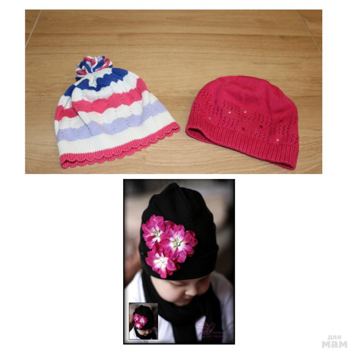 Шапочка черная двойной трикотаж р.48-50 . Цветок крепится на липучке. цена 300 рублей. Почта.