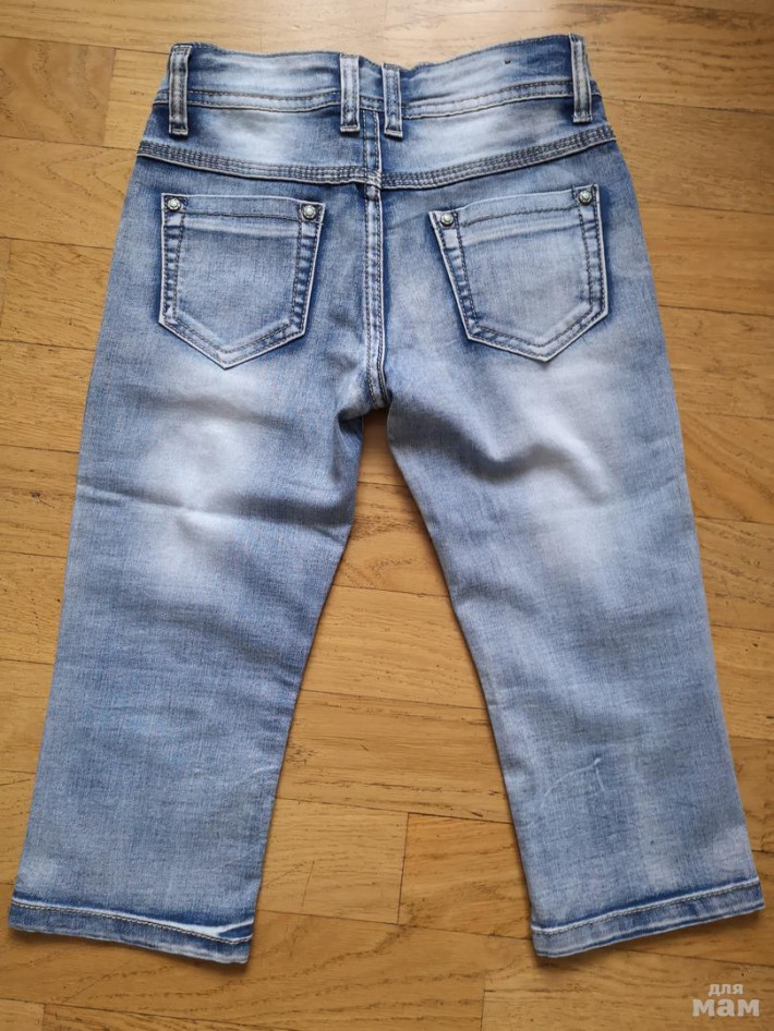 Бриджи в идеальном состоянии,одеты были один раз.Джинса не толстая,немного тянется.Состав 98% Хлопок, 2% Эластан