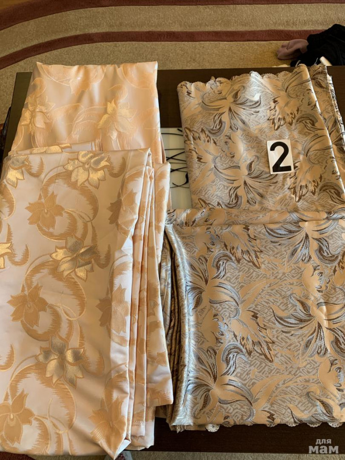 2). бежевые с серебром и коричневым . Ширина 1,60. Высота 2,75( не подшиты) цена 1200₽