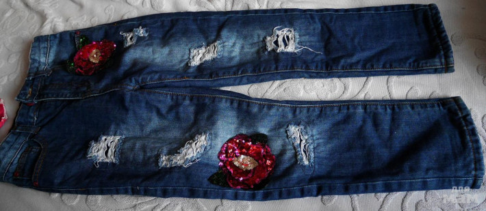 Длина 77 см, шаговый 53 см, талия п\о 30 см (утяжка) ширина в районе коленки 14 см