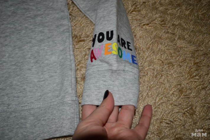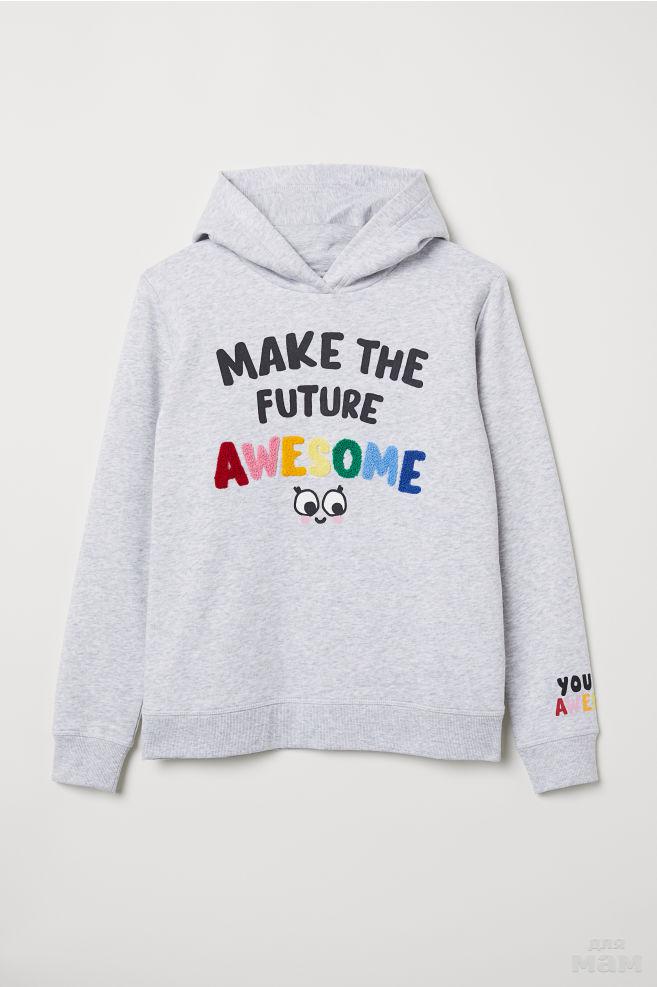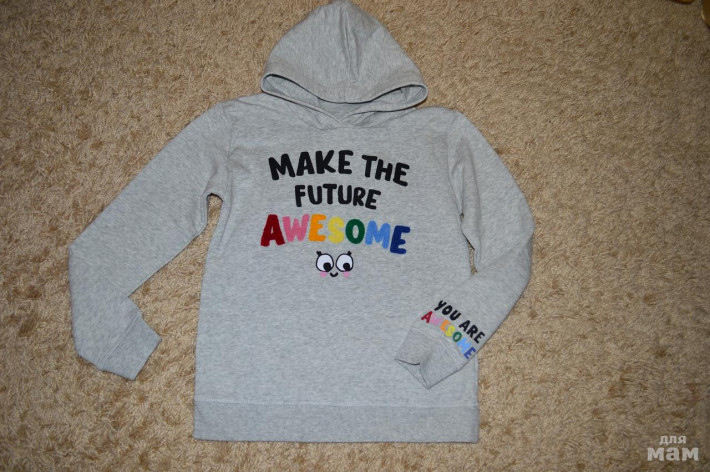 Свитшот с принтом из смесового хлопка. Капюшон на подкладке. Рельефная трикотажная резинка снизу на рукавах и по нижнему краю. Размер 134-140 цена 750р.