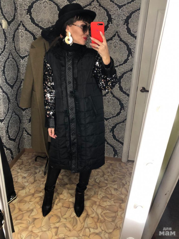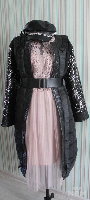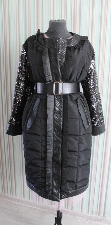 1.Стильный тренч-паетки, отделан рукав мягкими паеткам(не цепляются) инкрустация кожей,, ворот Шанель,OVER-SIZE от 42 до 50рра
