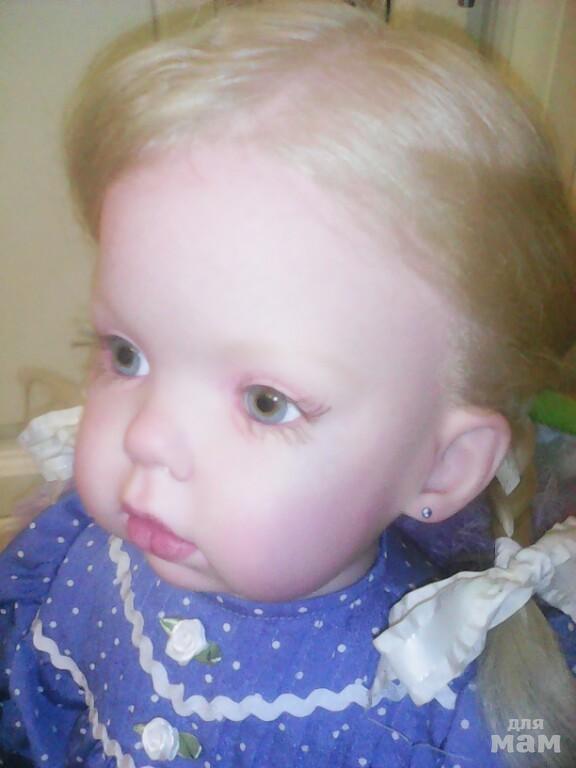 продам тодлера Тиббби,молд от Донны Руберт.все материалы натуральные,из Америки,глаза стекло Лауша,волосы и ресницы прошиты,можно заплетать,мыть нечасто.Лапочка приедет в одежде и со свидетельством о рождении.в коробке)небольшой торг.Кукла с сережками,тело мягконабивное,утяжелено стеклогранулятом,расписана красками генезис,все вопросы и доп фото в вайбер 89179756083