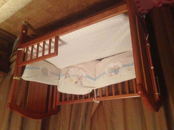 Продаю английскую деревянную кроватку для детей от 0 и до 2-3 лет после одного ребенка в отличном состоянии. Изготовлена из массива экологически чистой новозеландской сосны. Устойчивая конструкция с реечным ортопедическим матрасом. Увеличенное спальное место (65 на 125см). Передняя стенка опускается движением руки для удобства мамы. Самоориентирующиеся колесики с блокировкой. 2 положения дна. В комплекте съемный защитный деревянный бортик для подросшего ребенка (на фото). Силиконовые накладки на бортики для маленьких зубастиков.