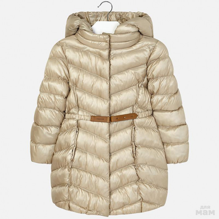 Демисезонное пальто красивого золотого цвета под пояс.