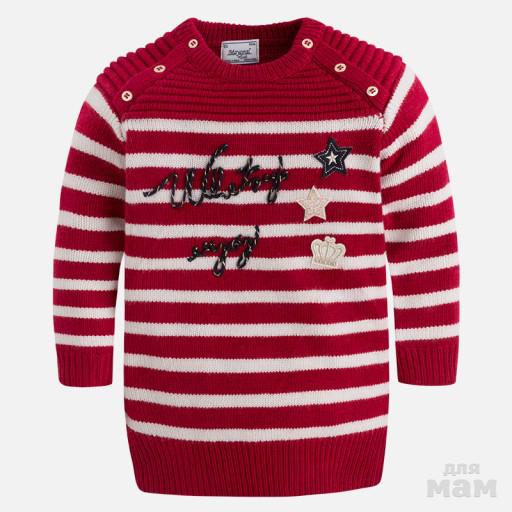 Стильное платье-свитер с нашивками для самых модных малышек.