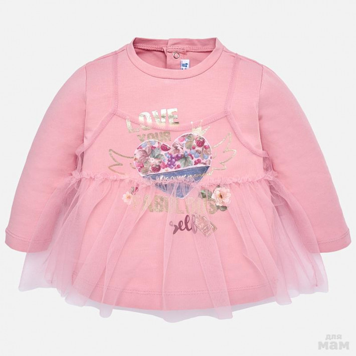 Лонгслив нежного розового цвета с красивым принтом.