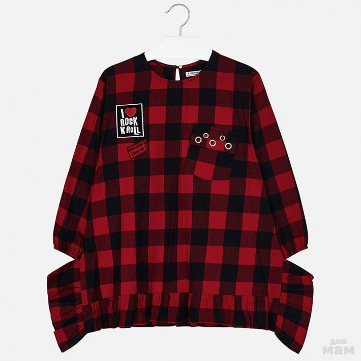 Платье с теплым трикотажным верхом и стильной клетчатой юбкой - идеально на холодное время года.