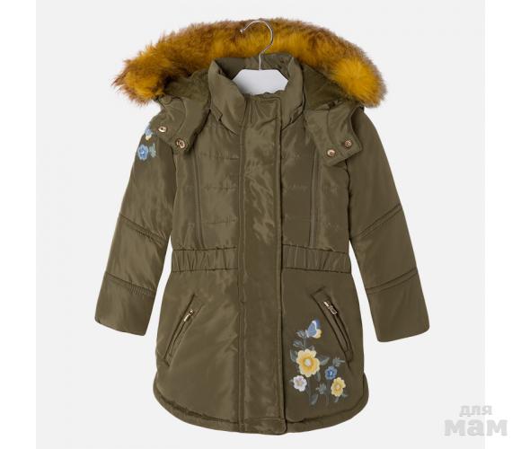 18. Демисезонная куртка цвета хаки с красивой вышивкой и контрастной меховой опушкой. Удлиненная, идеальна на раннюю весну.