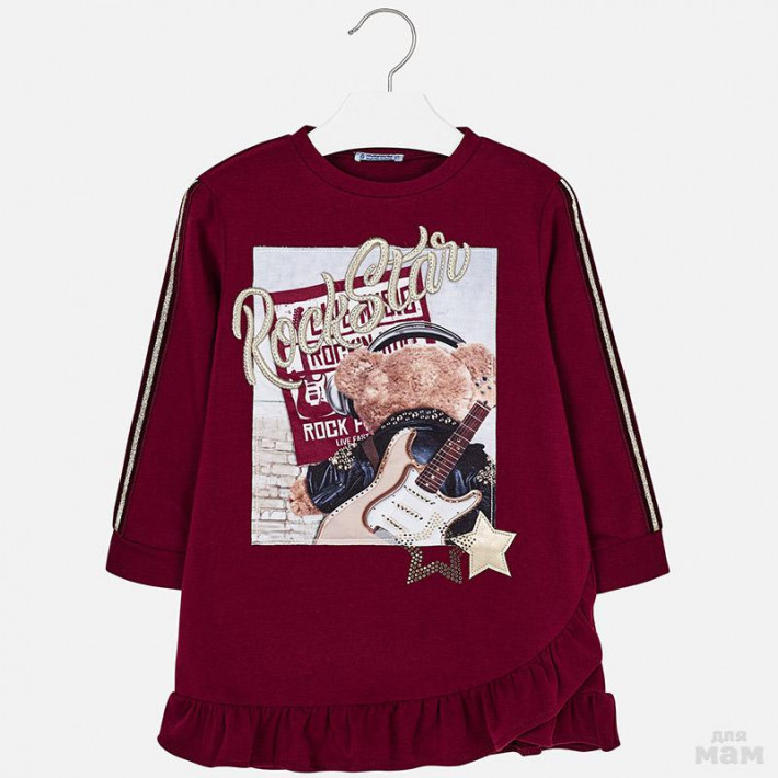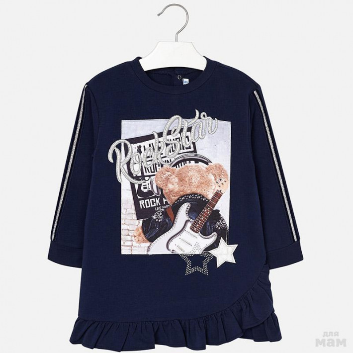 25. Хлопковое платье - эффект свитшота с нашивками и юбки с красивым графичным принтом. Идеальный вариант в садик или для похода в гости. Ткань френч терри - плотная и не жаркая.