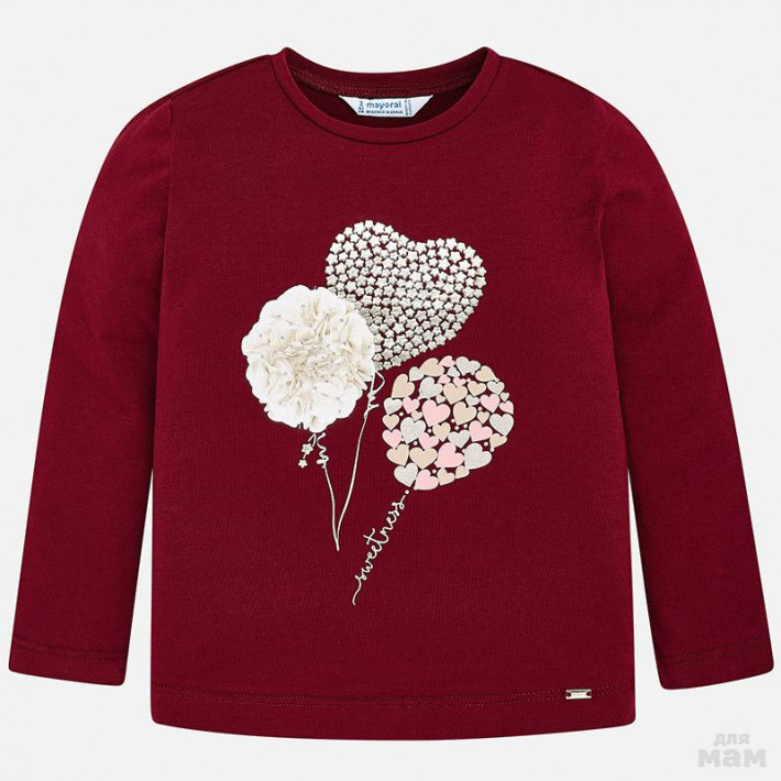 Лонгслив бордового цвета с красивым принтом.