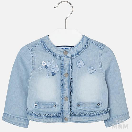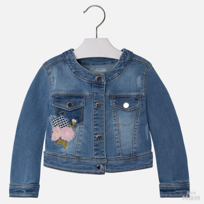 Джинсовая куртка с красивым декором из сверкающих камней.