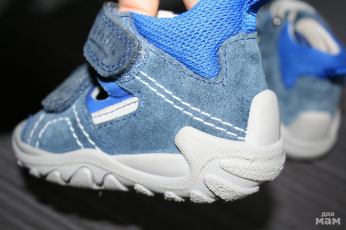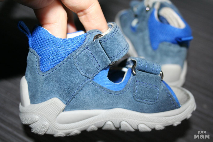 Сандали на первый шаг, липучки, высокий твердый задник, супинатор, есть коробка. На асфальте не гуляли, носил 1 ребенок только в коляске. Очень удобные. натуральная кожа-замша!