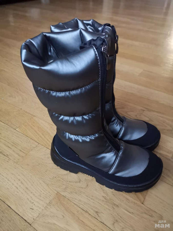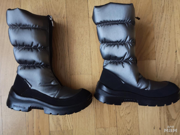 В таких сапогах комфортно ходить и в слякоть, и в морозы до -15 ºС.Они защищают от воды (водонепроницаемость: 8 000 mm) и холода (внутри натуральная шерсть). Мембрана «дышит» (5 000 г/кв.м/24 ч), поэтому ноги ребенка остаются сухими (не потеют) и теплыми.Стелька двухслойная – из меха и нетканого полотна. С помощью специальной петельки легко вынимается и сушится. Подошва – литая, из полиуретана. Не дубеет на морозе и не скользит.На пятке светоотражающий кант.