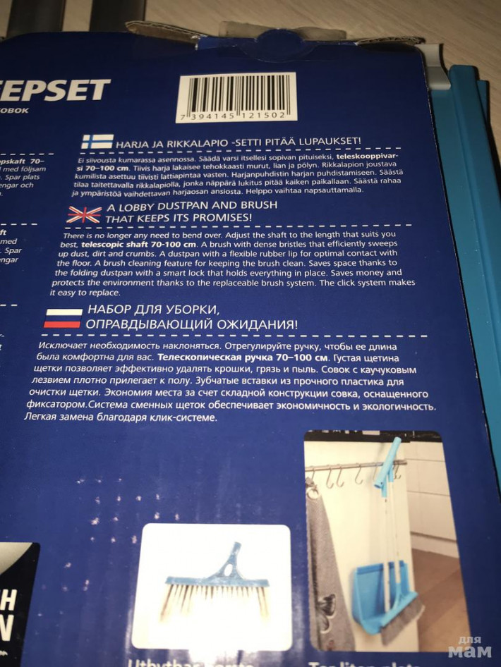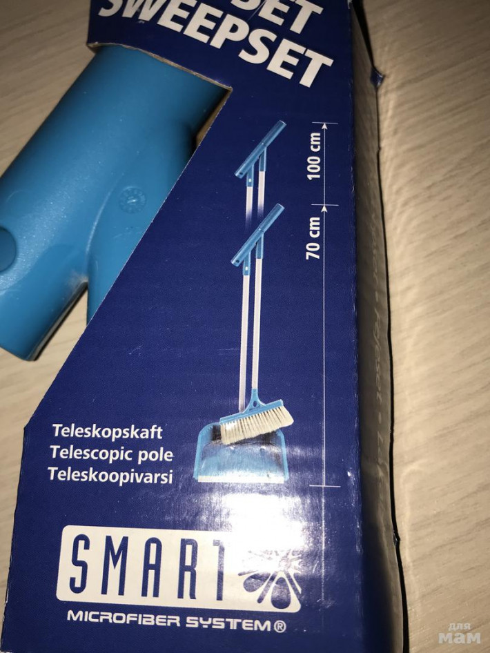 При хранении набор занимает минимум места, благодаря все той же телескопической конструкции рукоятей и соединительным фиксаторам на ручках совка и щетки.
