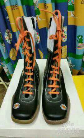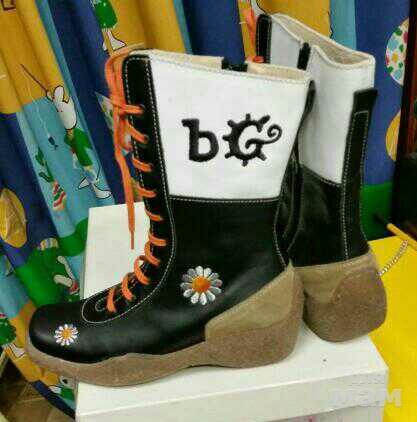 абсолютно новые итальянские демисезонные кожаные сапоги на молнии со шнуровкой. Размер 31. Внутри кожа. Новые без коробки т.к. прислали из Италии. Вышевка ромашки. Стильные и неординарные. стелька 20.5 см, на молнии, один раз зашнуровал и все, очень удобно одевать.